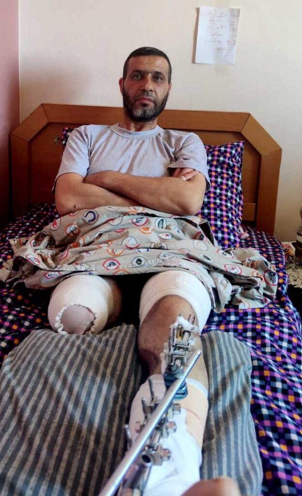 تمّ نقلي إلى مستشفى الشفاء وهناك قطع الأطبّاء رجلي اليمنى من فوق الرّكبة. كذلك دخلت شظايا في ظهري ورأسي ورجلي اليمنى وهناك ثغرة كبيرة في اللّحم. بعد سبعة أيّام تمّ نقلي إلى مستشفى العودة لاستكمال العلاج وها أنا ما زلت تحت العلاج.